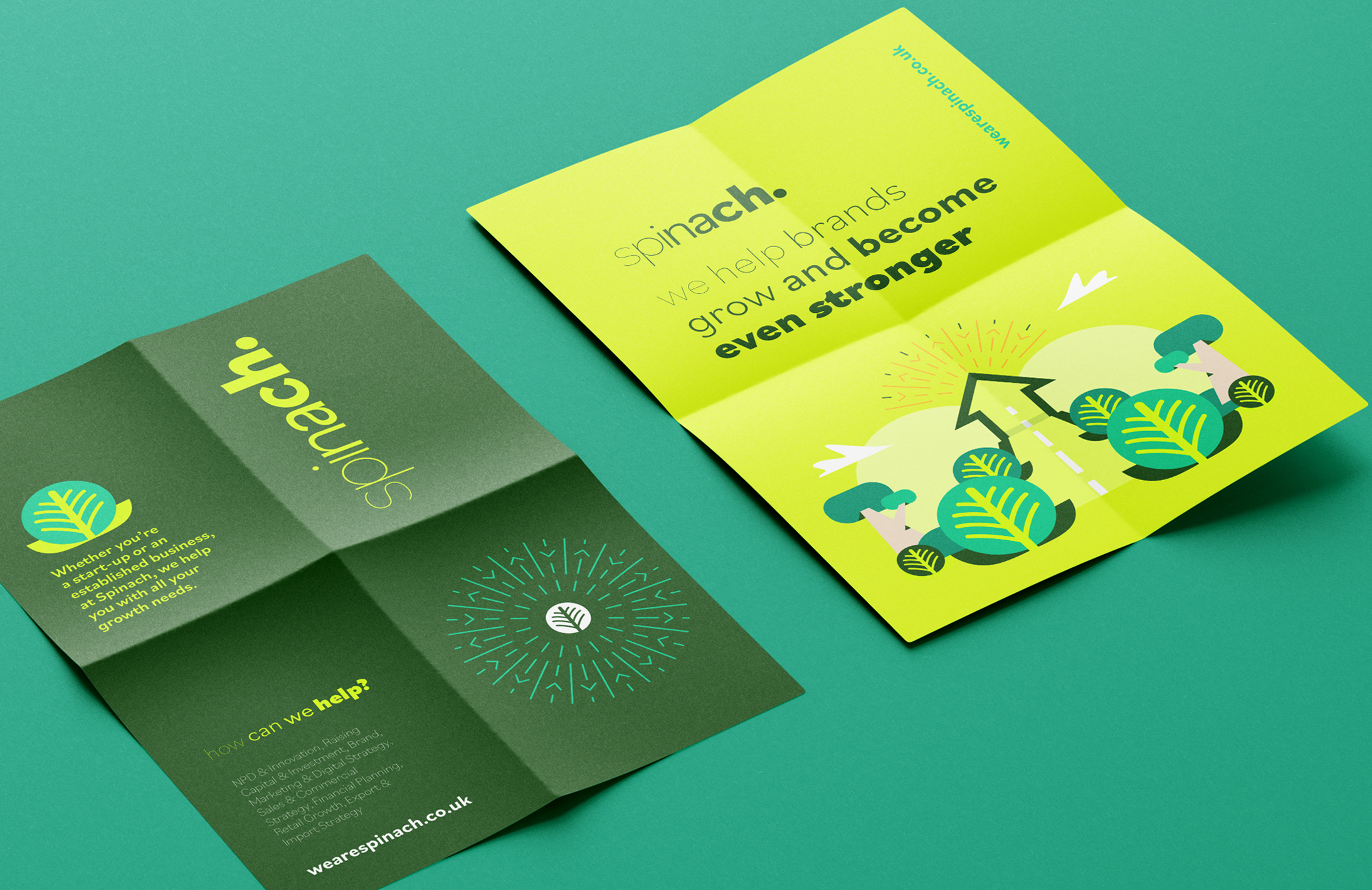 We created a playful brand for them that visualsed the progression and strength behind Spinach as an agency and illustrated how their involvemnet in any project or individual allowed for visual growth.